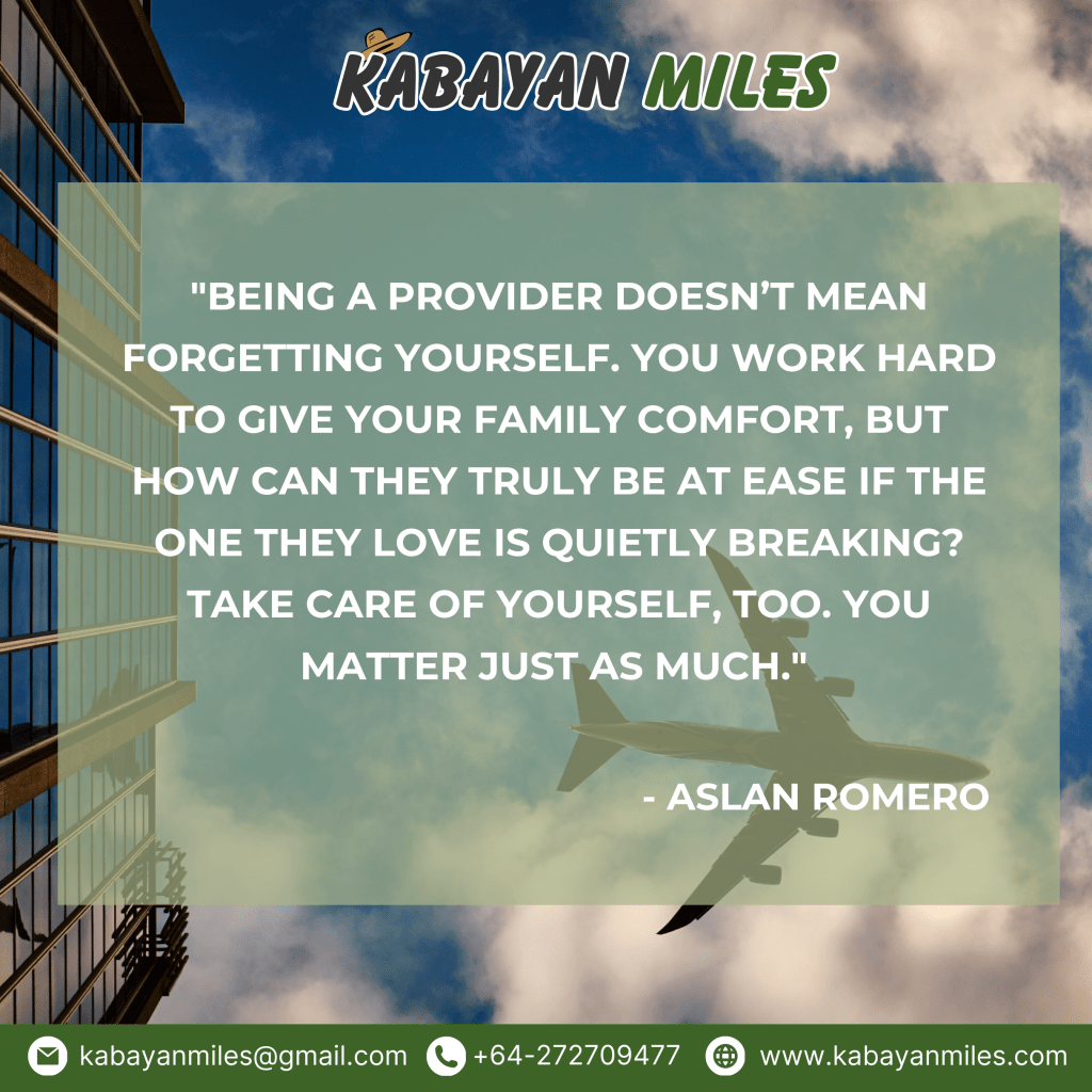 Sa pagtulong sa pamilya, huwag kakalimutan ang sarili. While providing for your loved ones, remember to take care of yourself too.